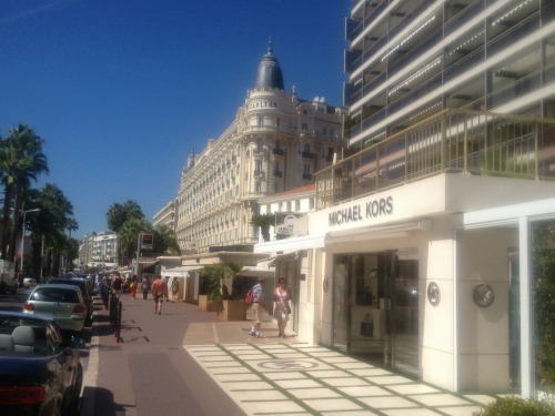 l’envie de rentrer nous saisis…Vont-ils nous prier poliment de passer notre chemin… Nous les mécréants, que nenni, les concierges postés à l’entrée nous invitent à rentrer et prendre notre temps pour notre visite…l’ambiance à l’intérieur est sophistiquée et simple…C’est peut être ça la classe finalement… trois photos plus tard, nous sommes dehors, saluer avec bienveillance par nos hôtes. Un peu plus loin, nous nous aventurons sur la Croisette, et ma fille souhaite rentrer chez MICKAEL KORS